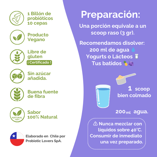 - Disuelve bien 1 scoop colmado (4,5 g) en 200 cc de agua fría y disfruta inmediatamente.