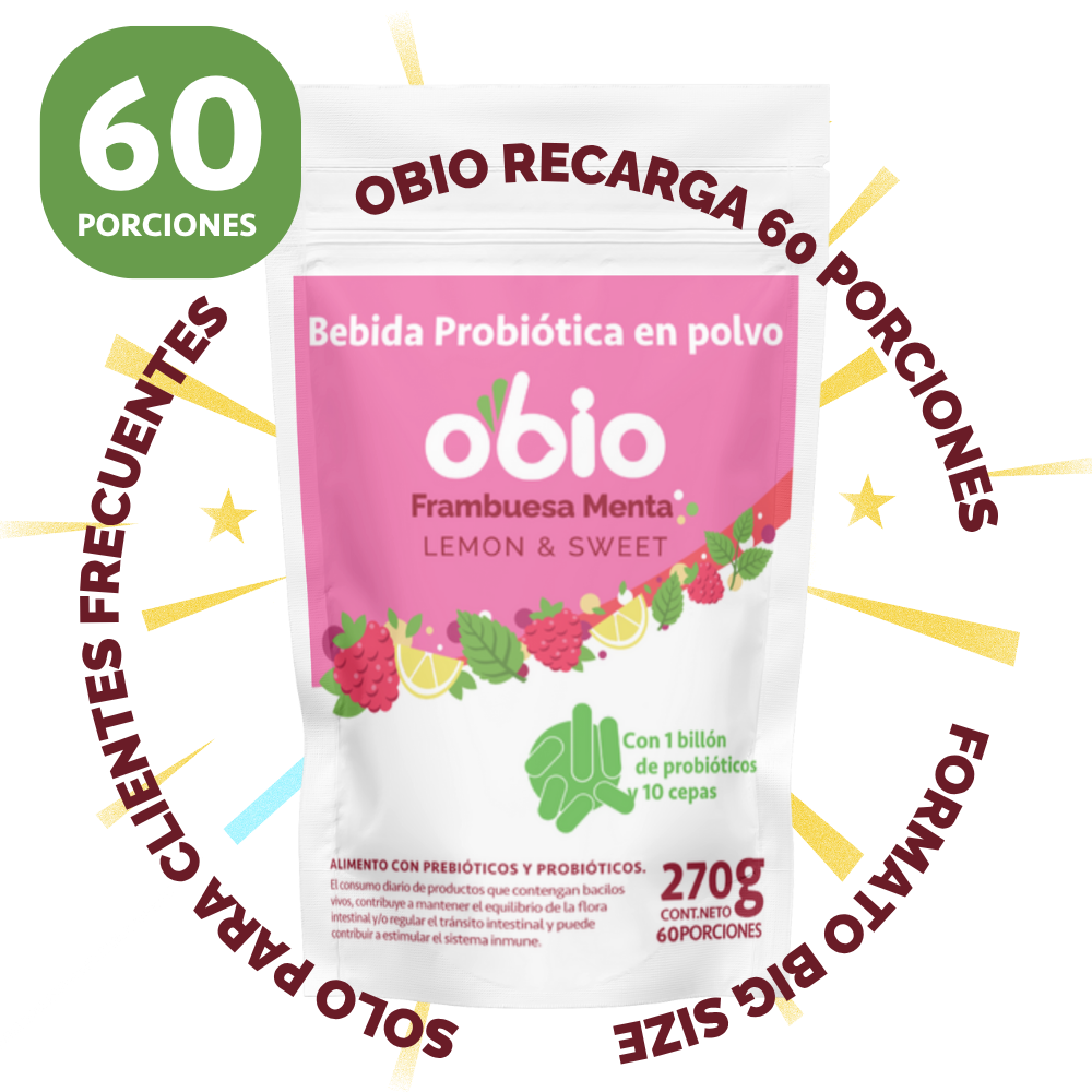 - Te recomendamos que lo consumas frío. Disolver Obio en líquidos a temperatura mayor a 50º inactiva los probióticos.