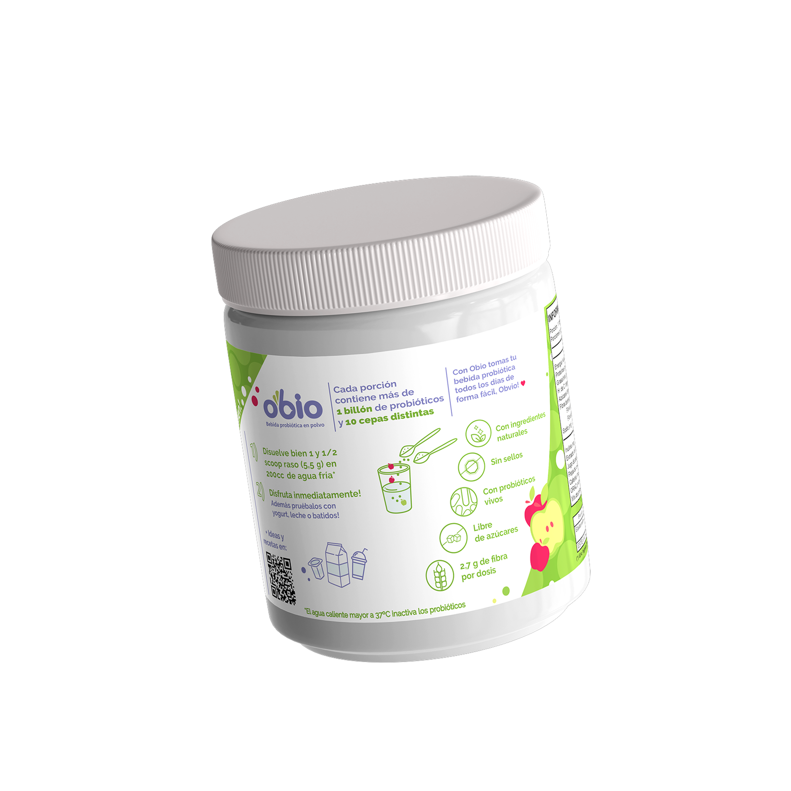 - Te recomendamos que lo consumas frío. Disolver Obio en líquidos a temperatura mayor a 37º inactiva los probióticos.
