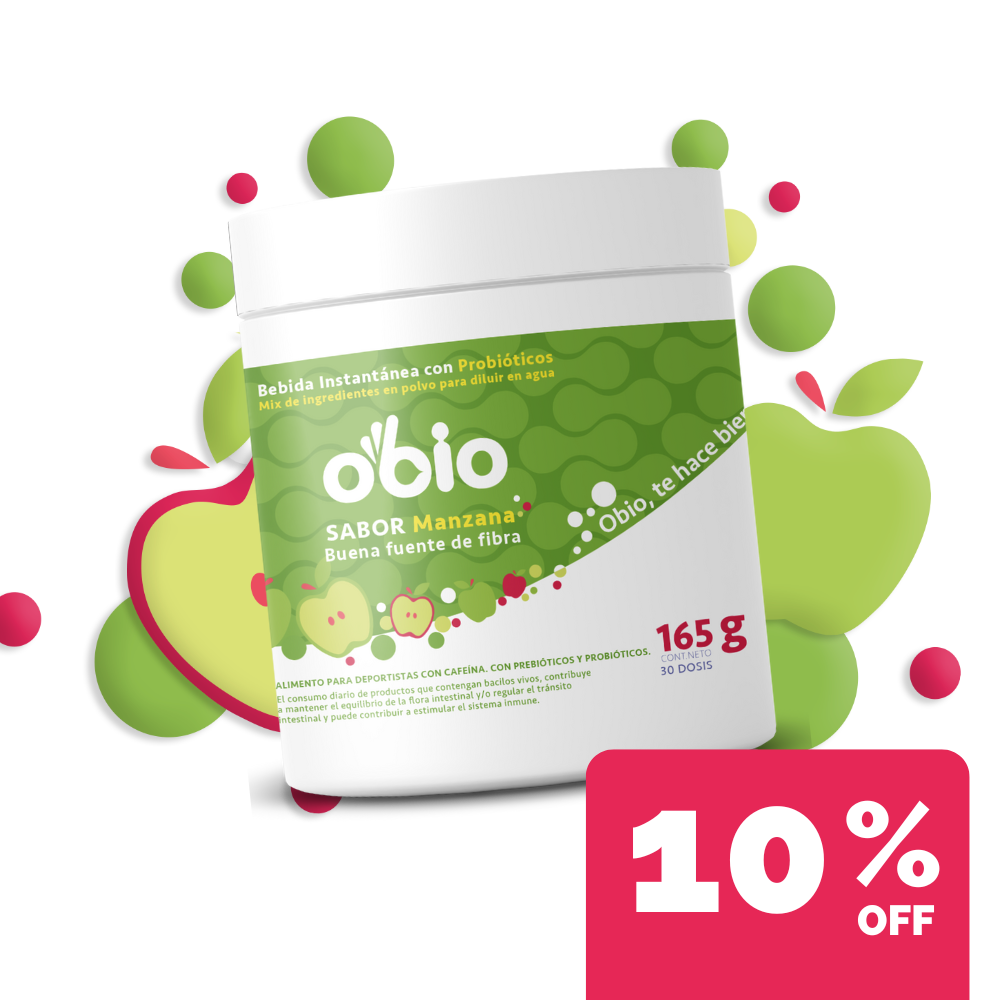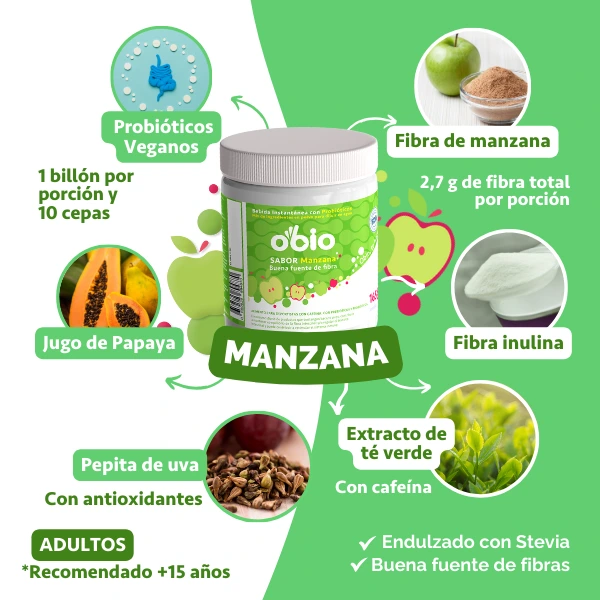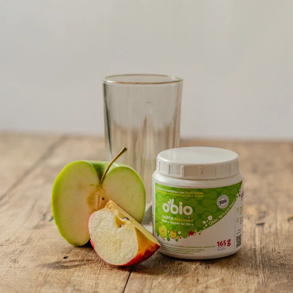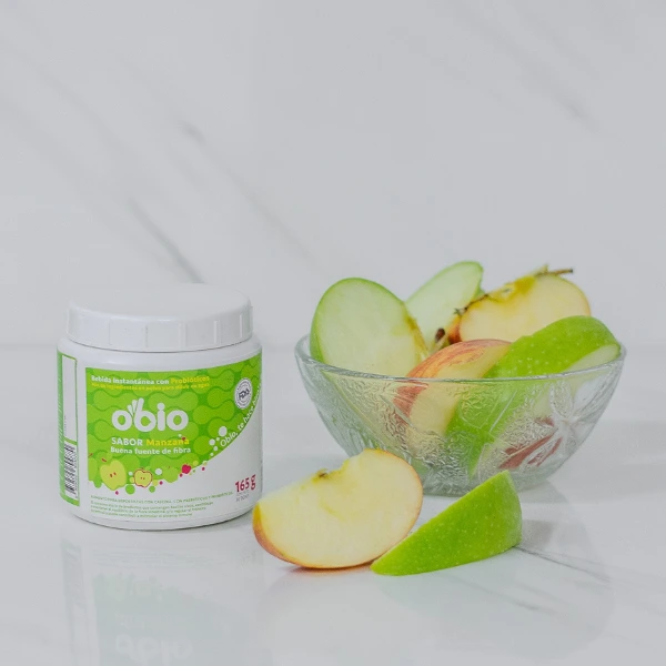 Prueba el nuevo Obio sabor manzana buena fuente de fibra.