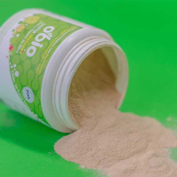 Obio es una bebida instantánea en polvo, que contiene un mix de ingredientes en polvo para diluir en agua.